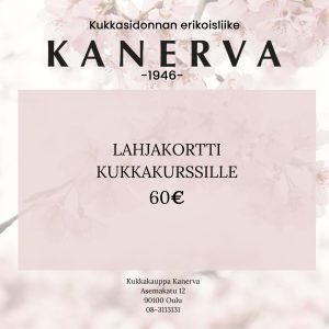 Järjestämme liikkeessämme ympäri vuoden kauden teemaan sopivia kukkakursseja. Kursseilla tehdään esimerkiksi kukkakimppuja, kukkaseppeleitä, kukka-asetelmia, ovikransseja ja erilaisia kuivakukkatöitä. Kursseilla saat opastusta kukkien käsittelyyn ja sidontatekniikoihin liittyen, sekä hoito-ohjeet kotiin. Kursseille osallistuakseen ei tarvitse olla aiempaa kokemusta, me kyllä opastamme kukkasidonnan saloihin. Kukkakurssi on ihana elämys, luovaa tekemistä huumaavien kukkien tuoksussa ja kotiin vietäväksi saat ihanan omatekemän kukkasomisteen.
