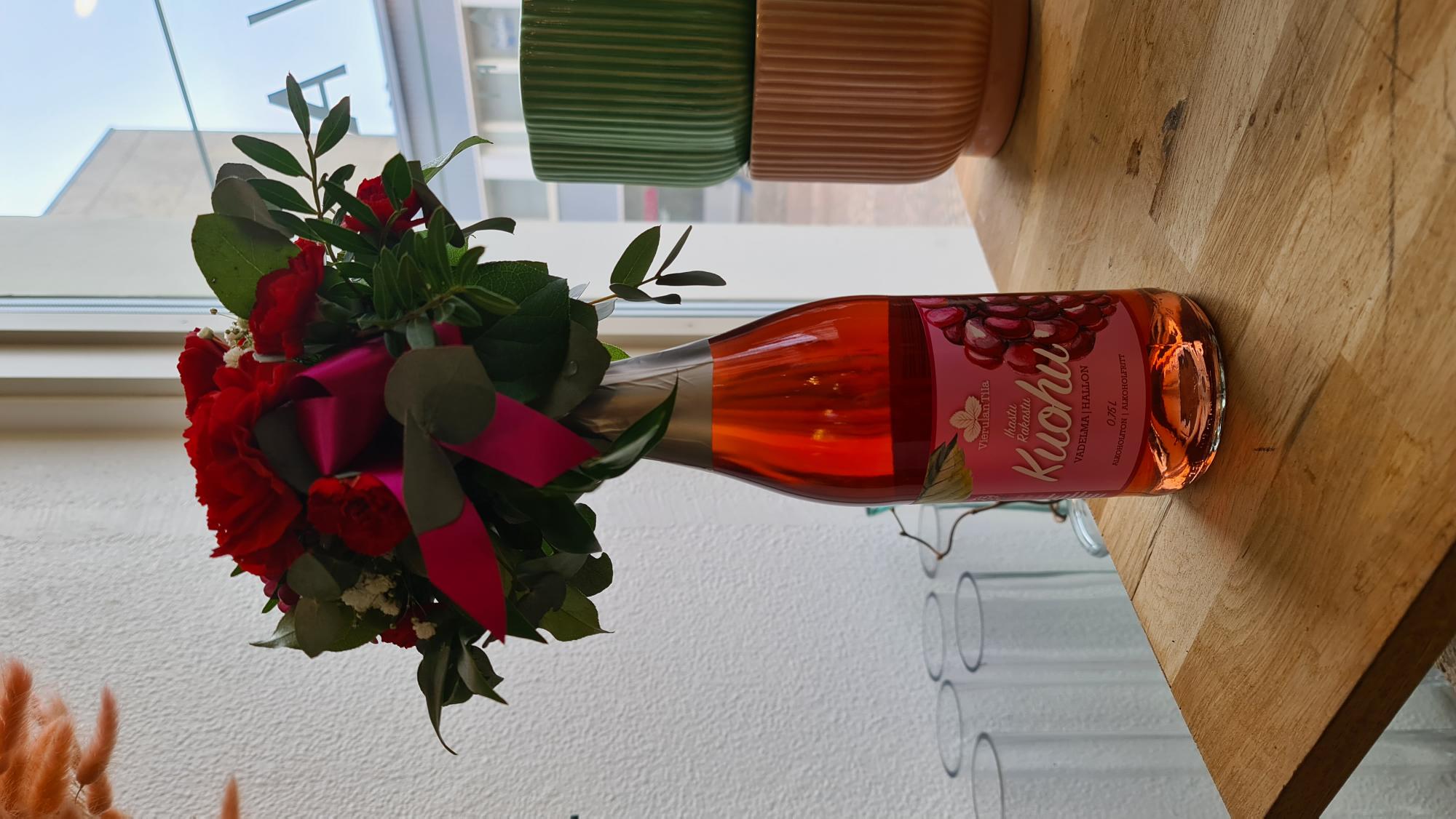 Kuohujuomapullo kukkakoristein